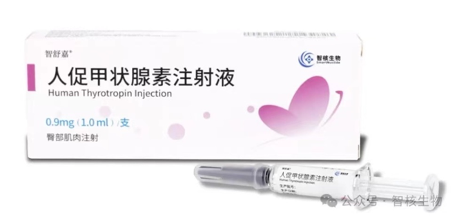 人促甲状腺素注射液:是国内首个上市的rhTSH产品,产品特点为起效快,更安全。该产品填补了国内20余年市场空白。主要用于无远处转移分化型甲状腺癌患者在甲状腺全切或近全切术后碘[131I]清除残余甲状腺组织的治疗。